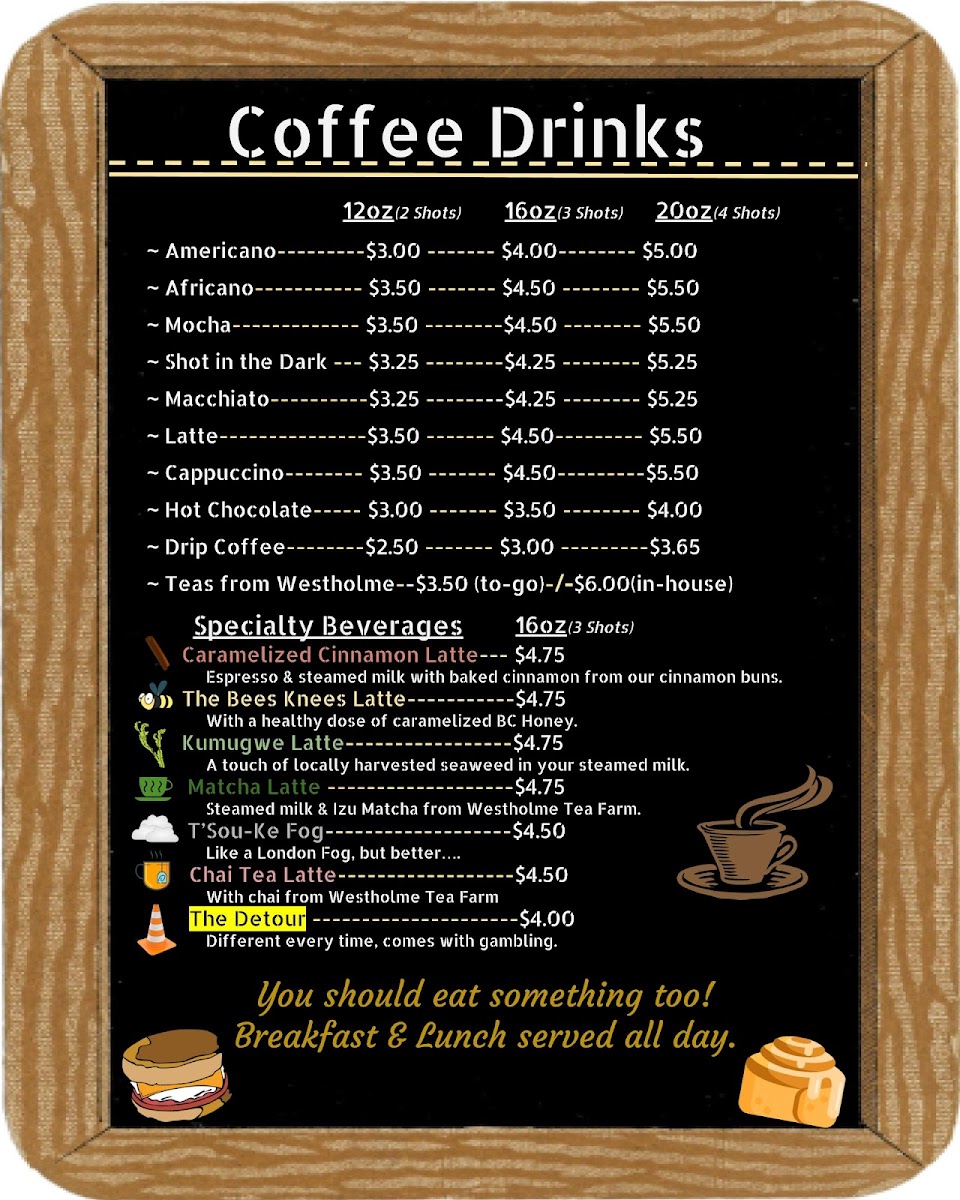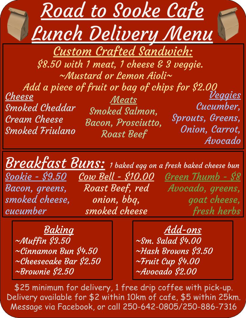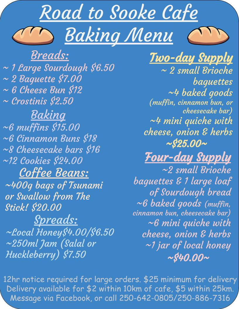 Road To Sooke Cafe Menu